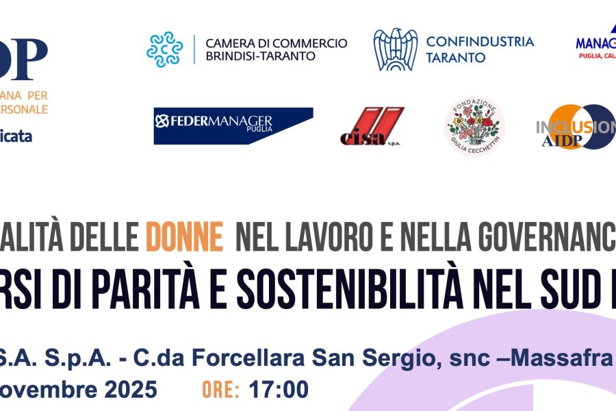 La centralità delle donne nel lavoro e nella governance: Federmanager Puglia invita i soci all’evento del 26 novembre